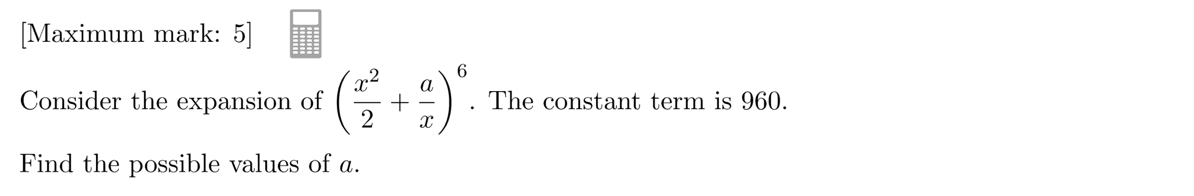IB Math AA HL Exam Questionbank → Binomial Theorem